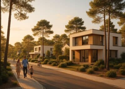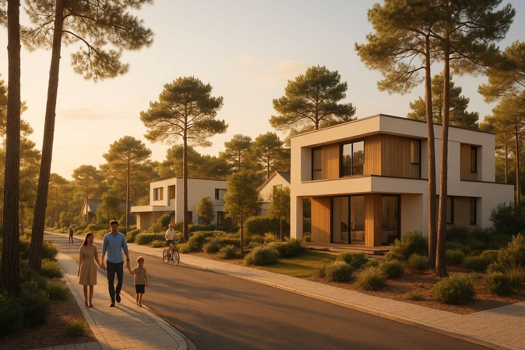 Le domaine proposera également un club house installé dans une ferme landaise restaurée, la réintroduction de l’abeille noire des Landes, ainsi que des commerces de proximité favorisant un cadre de vie durable et convivial.